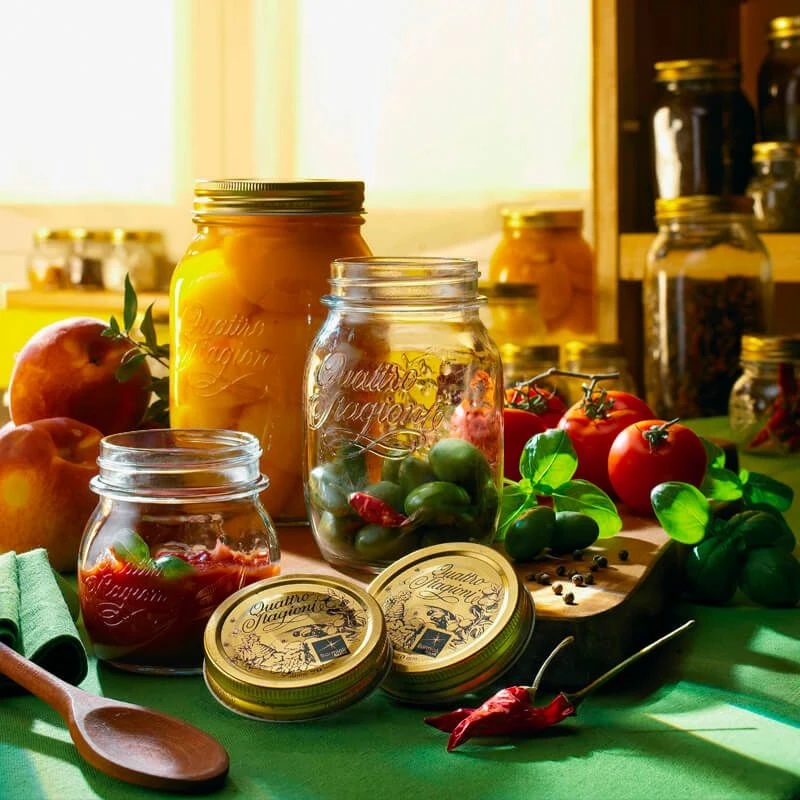 De Bormioli Weckpot van de collectie Quattro Stagioni is ideaal om bijvoorbeeld azijn, olijfolie, honing, abrikozen, tomatensaus, sappen, droge etenswaren zaden of pitten in te bewaren. De flessen zullen uw aanricht een prachtig aanzicht geven door het fraaie design. De deksels van de collectie Quattro Stagione zuigen vacuum wanneer ze op de pot gedraaid worden. Dit zorgt ervoor dat de inhoud langer vers blijft.