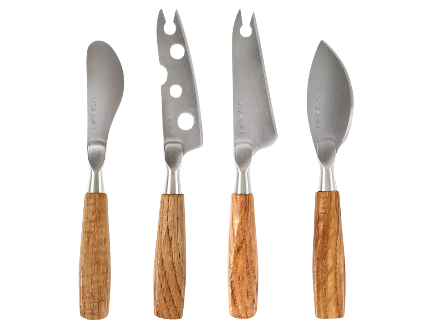 Deze kaasmessenset is geschikt voor alle soorten kaas. De kaasmessen zijn gemaakt van eikenhout en RVS. Deze set bestaat uit een presenteermes, smeermes, kaasmes cheesy en parmesan mes. De Boska Kaasmessenset Mini Oslo kan eenvoudig met de hand gereinigd worden.