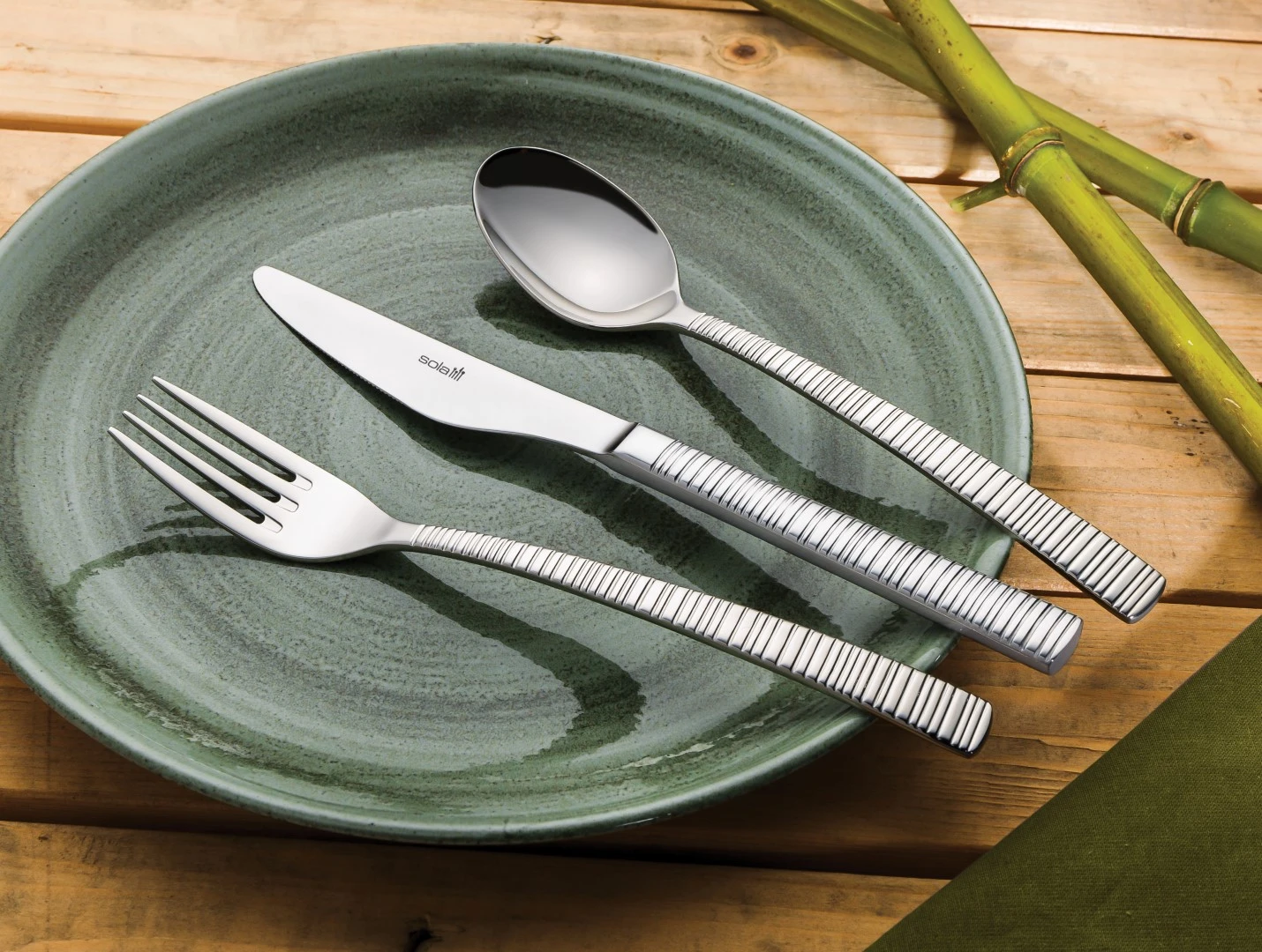 Het zilverkleurige bestek uit de Sola Bali serie heeft een moderne en hippe uitstraling. De elegante ribbelvorm, bamboelook in het heft geeft het bestek een Aziatische sfeer. Het bestek is vervaardigd uit zilverwit 18/10 edelstaal en met de hand gepolijst. Hierdoor heeft het bestek een luxe uitstraling en heeft het een optimale levensduur. Alle onderdelen kunnen na gebruik worden gereinigd in de vaatwasser. Met dit bestek heb je de basisonderdelen om jouw diner te starten.Â